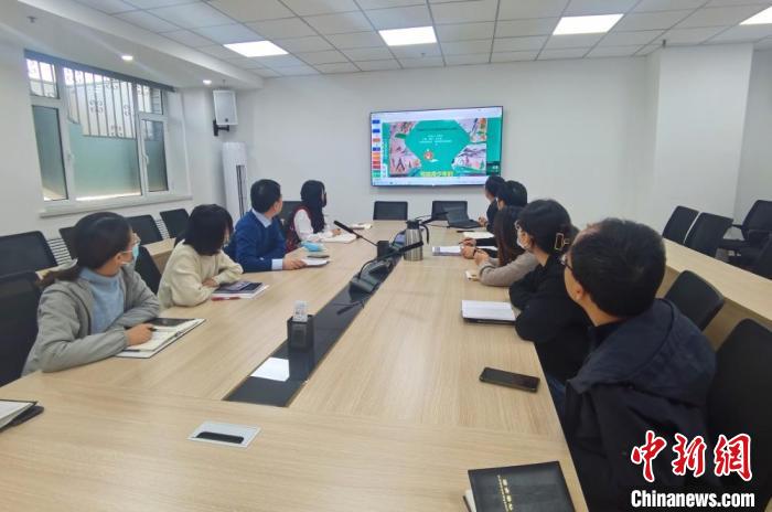图为甘肃教育出版社《写给青少年的敦煌故事》丛书项目组,探讨图书封面设计。 闫姣 摄