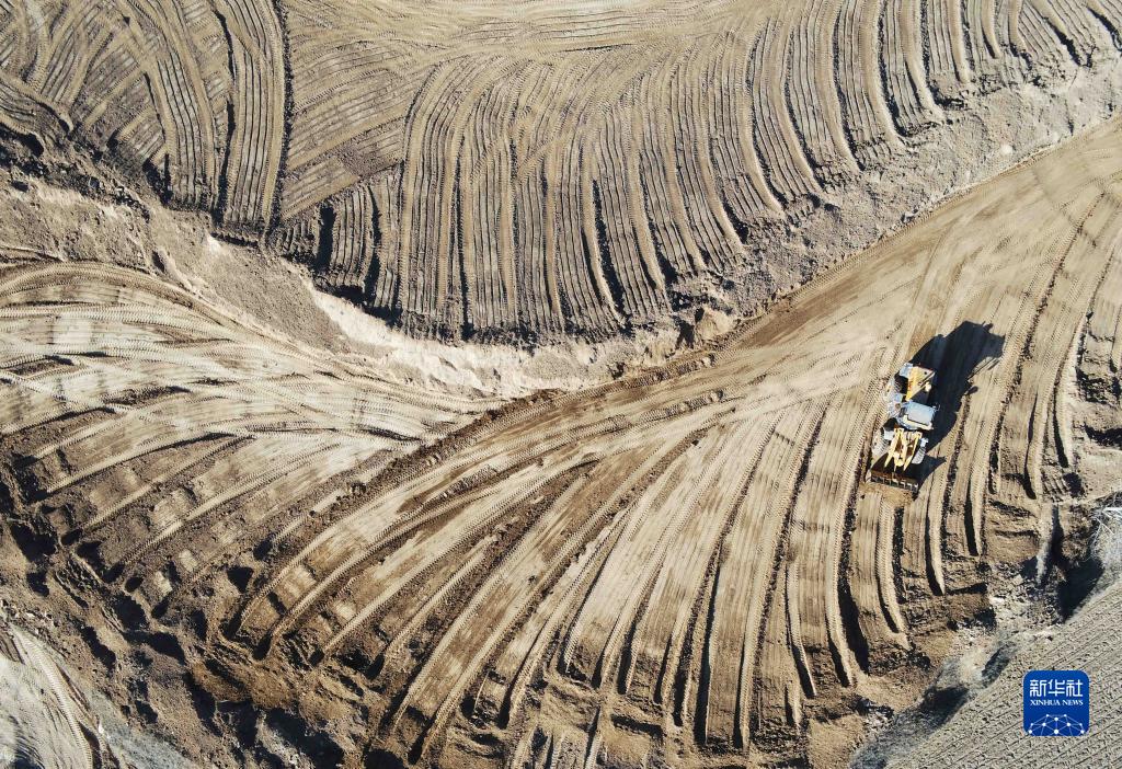 11月24日,施工机械在甘肃省定西市安定区团结镇庙川村高标准农田建设现场作业(无人机照片)。新华社发(王克贤 摄)