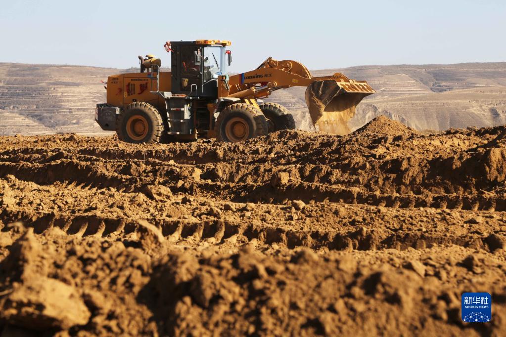 11月24日,施工机械在甘肃省定西市安定区团结镇庙川村高标准农田建设现场作业。新华社发(王克贤 摄)
