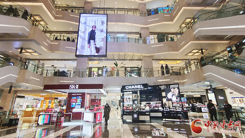 11月22日,几位市民在兰州某大型商场选购商品。当日,兰州市多家商场在严格落实疫情防控措施的前提下恢复下线营业。