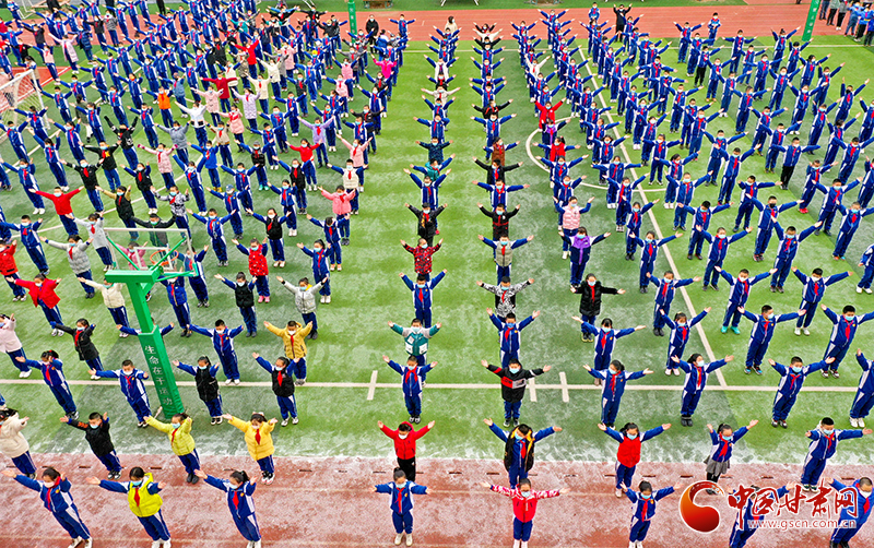 11月20日,张掖市甘州区青东小学的师生们在做课间操。当日,张掖市甘州区68所高中、初中、小学在严格落实疫情防控措施的前提下,全部恢复正常教学。