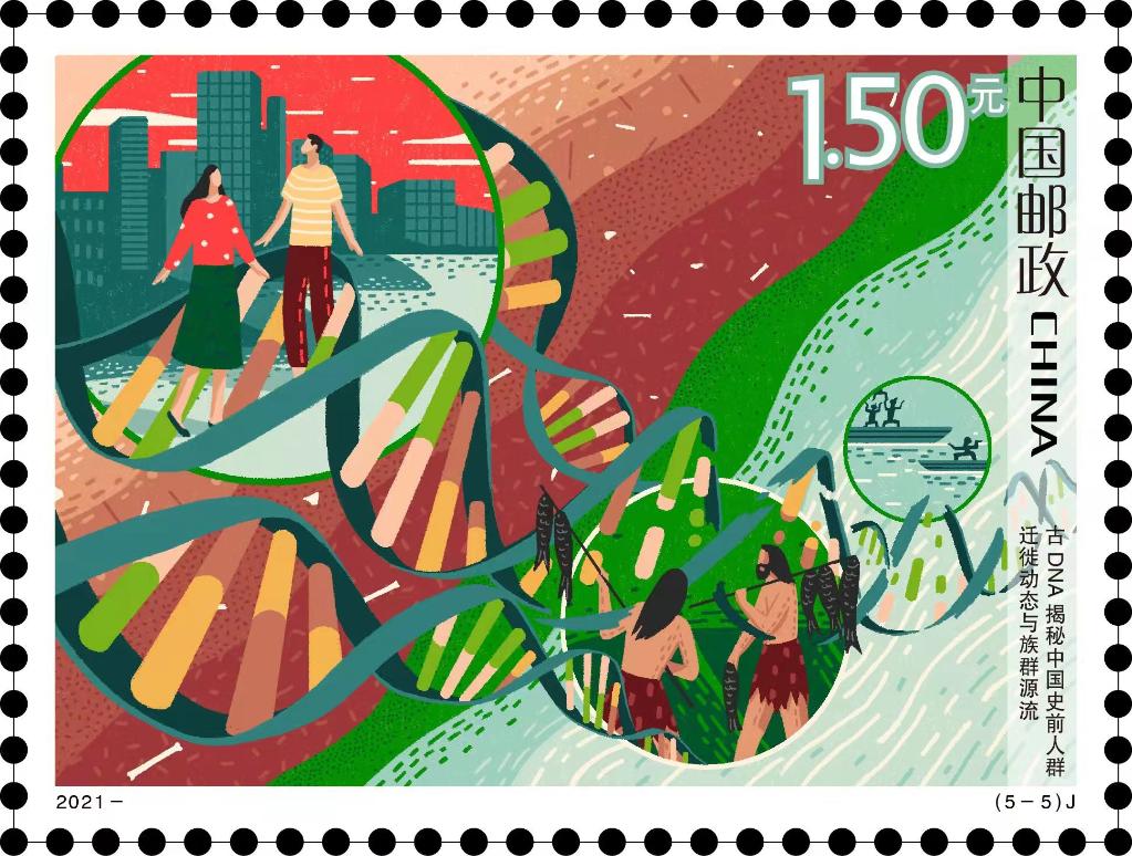 本套邮票内容为:嫦娥五号、“奋斗者”号全海深载人潜水器、“揭示蝗虫聚群成灾的奥秘”“华龙一号”“古DNA揭秘中国史前人群迁徙动态与族群源流”。