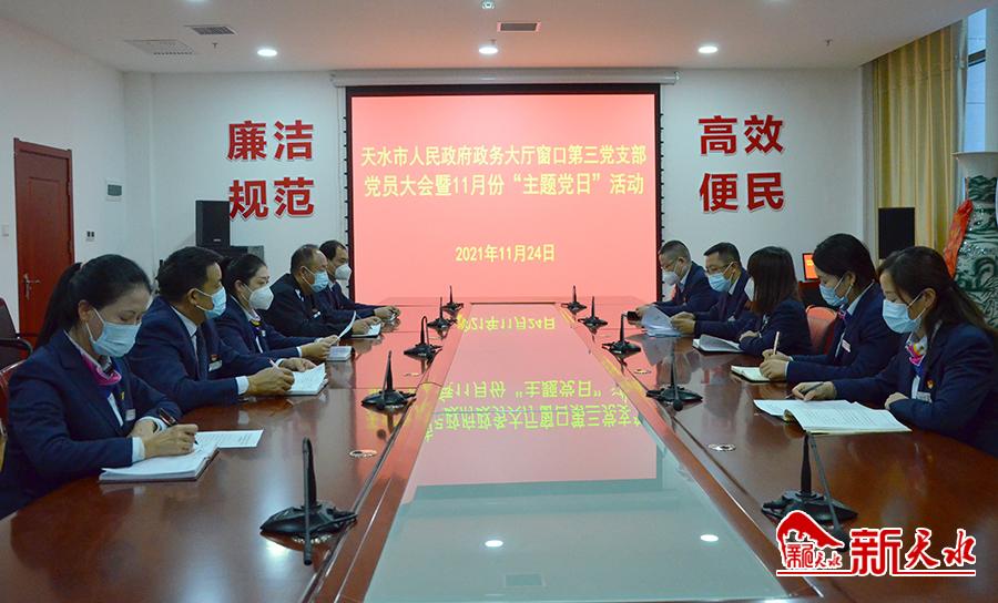 主持党员大会的第三支部书记陈永骧告诉记者,告诉记者,深入学习贯彻落实全会精神,用全会精神统一思想、坚定信心、增强斗志,已成为每个政务工作者的共识。“作为一名党员,更应该以全会精神为指引,把‘为人民服务’的理念融入自己工作生活的方方面面,紧盯‘便民利企’和群众‘急难愁盼’问题,努力提升业务能力和业务水平,把党和政府的温暖以及‘简政放权’和‘放管服’的红利送到群众身边,打通服务群众‘最后一公里’。”陈永骧说。(新天水记者 王琴)