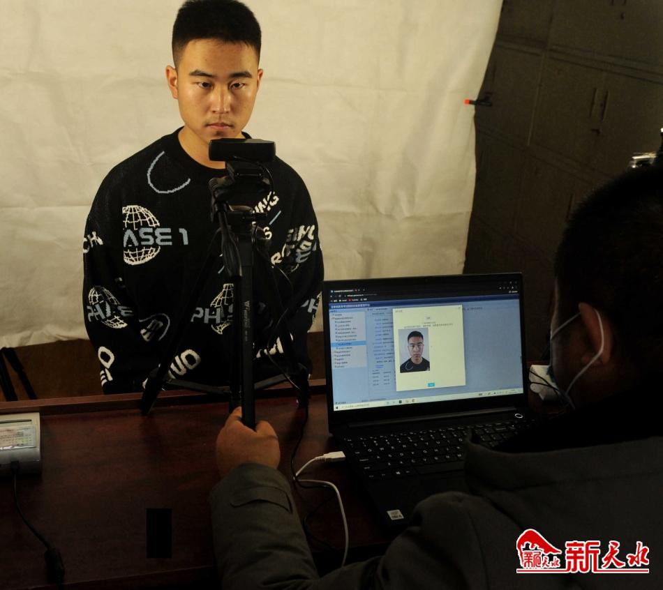11月27日下午4时,秦州区招生办工作人员正在给参加2022年高考的艺术和体育生采集数码照片、识别考生身份证信息。