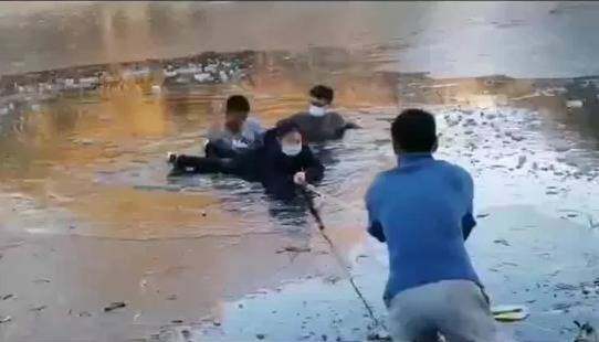 张掖:小女孩掉入冰湖,3大学生用肘破冰施救