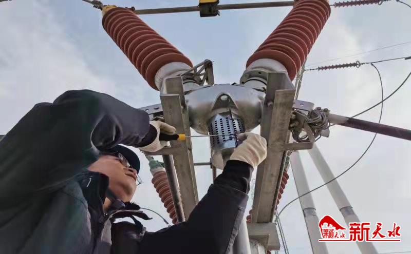 新天水讯 11月28日,在110千伏冀城变电站设备巡视现场,国网天水供电公司变电运检人员完成对GW5-110ⅡDW型隔离开关防鸟罩做检查维护,这是该公司针对该型号隔离开关研制的新型防鸟装置,可有效杜绝鸟类在该型隔离开关上筑巢搭窝,防治鸟害效果明显。