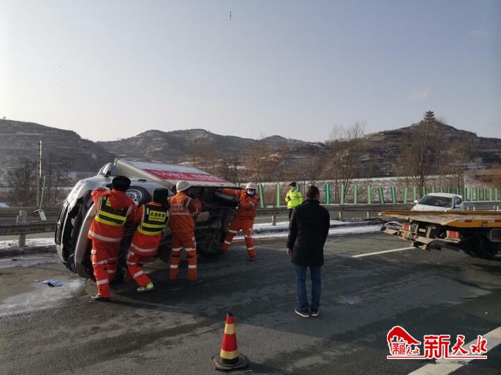 接报后,天水清障救援一大队立即组织人员赶赴现场救援。到达现场一组人员迅速布置安全作业区,留安全员在前端预警疏导交通,提醒过往车辆及时减速有序通行。一组人员勘察现场准备救援,经查两车一共3人,无人员受伤。救援人员立即科学施救,快速对车辆进行扶正清障救援作业,经联勤单位多方努力,道路恢复正常通行。 在处置这起交通事故的同时,后方又一小货车侧翻,经查该车是天水运输抗疫物资车辆,车上1人,无人员受伤。救援队员协助社会清障救援机构对该车辆进行吊装作业,于9时41分将该车扶正,并迅速处理事故现场,恢复公路通行。