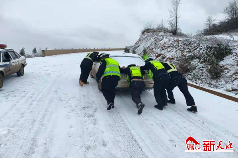 11月29日,受到前一天雨夹雪天气影响,甘谷县部分山区道路出现积雪结冰现象,甘谷县公安局交警大队针对易发生交通事故的危险路段,组织民警在路面实施管控,提醒广大驾驶员路段湿滑危险,减速慢行。