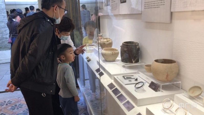 市民观看南头古城出土文化展。(央广网记者 黄璐璐摄)