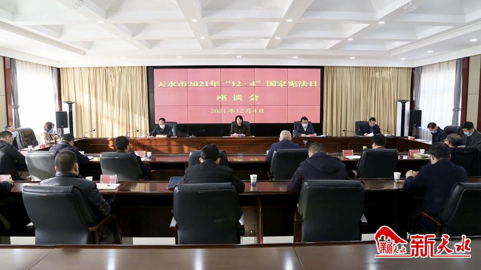 新天水讯【见习记者 王琴】12月4日是我国第八个“国家宪法日”,市人大常委会组织召开全市2021年“12•4”国家宪法日座谈会,深入学习贯彻习近平法治思想和党的十九届六中全会精神,全面贯彻落实中央和省、市关于学习宣传和贯彻实施宪法的部署要求。