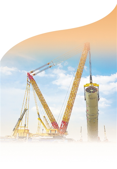 徐工4000吨级履带式起重机正在吊起煤炭液化反应器。资料照片