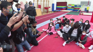 内地奥运健儿访港代表团成员5日到访香港元朗区体育会,与香港市民交流互动。