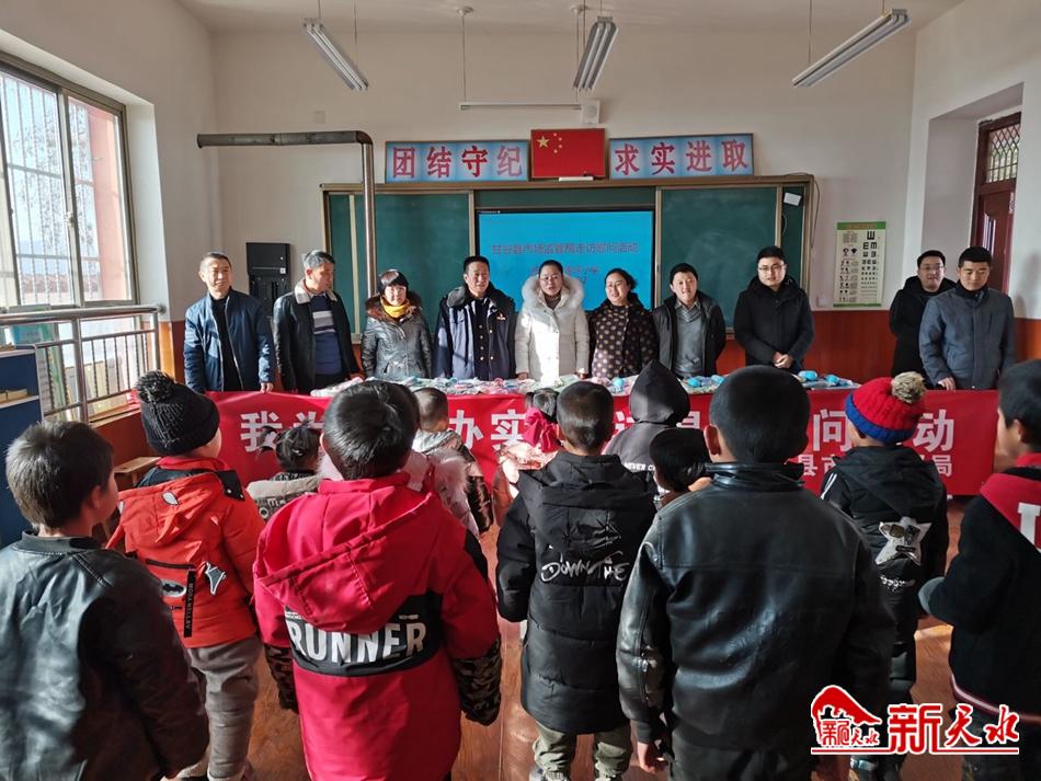 新天水讯【通讯员黄少华】12月2日,甘谷县市场监督管理局携爱心企业甘谷县陇原巧手文化发展有限公司,向新兴镇雒家坪小学捐赠学习用品,开展助学帮扶活动。