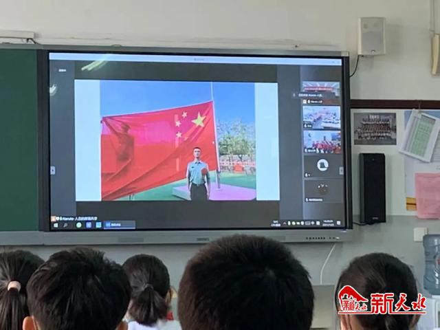 视频连线中,曾经担任中国人民解放军仪仗大队国旗护卫队一中队六班班长的王东升向两所小学的学生讲述了自己执行天安门升降旗任务的感受,同学们在他的讲述中点燃了爱国热情,不断提问,大家也通过小小的屏幕,携手穿越一千多公里路程,与飘扬的国旗一起放飞梦想。