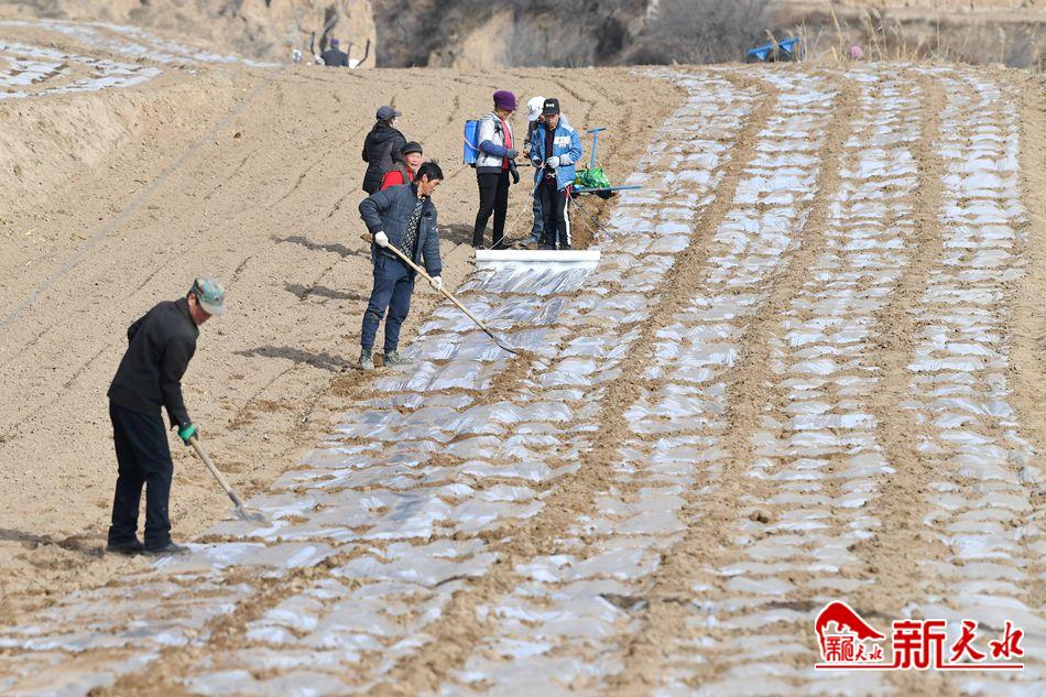 干群齐上阵 顶凌覆膜忙