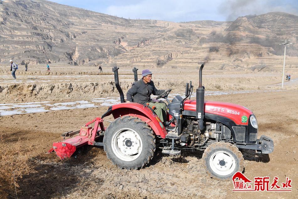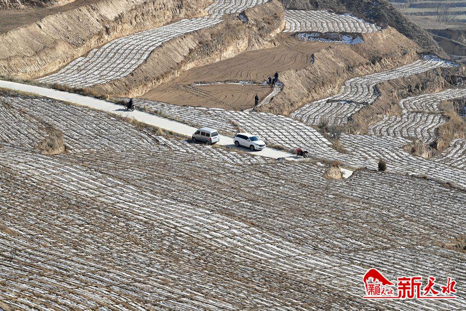 12月6日,甘谷县礼辛镇河沟村村民正在田间地头开展顶凌覆膜。连日来,甘谷县抢农时,抓“墒”机,统筹谋划,迅速行动,组织干部进村入户,开展宣传动员,广泛发动群众开展顶凌覆膜工作。在礼辛、金山等乡镇的山川塬峁,覆膜机来回穿梭,党员干部和专业技术人员与群众一起抢时抢墒、整地施肥、覆盖地膜,一派繁忙的景象。目前,全县顶凌覆膜达5万余亩。