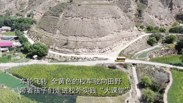 车轮飞转,一辆金黄色的校车驶向田野,带着学生们走进校外实践“大课堂”。