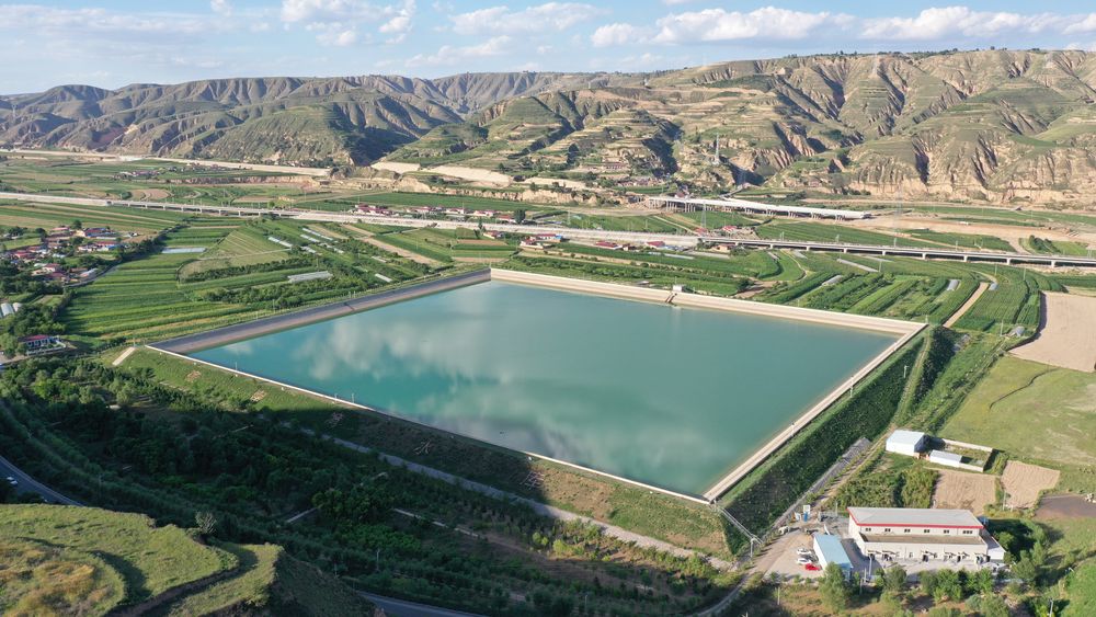 图为扬黄工程环县张南湾水库。(庆阳市扬黄续建工程建设管理局提供)