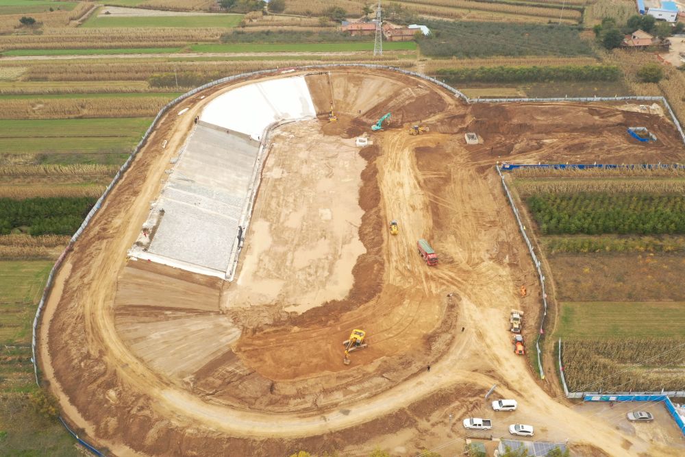 图为2021年10月23日拍摄的正在修建中的驿马调蓄水池。(庆阳市扬黄续建工程建设管理局提供)