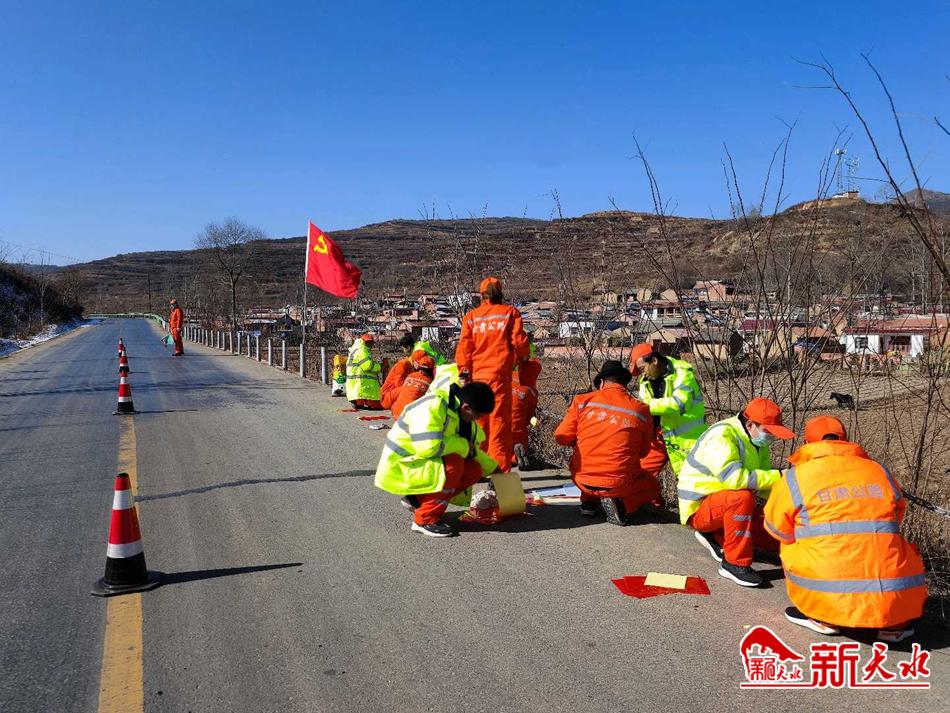 该段能下基层的机关干部职工每天走出机关,俯下身子,同其他干部职工打成一片,大家同在党旗下,冒着冬季凌冽寒风,整修路肩、清扫路面、捡拾垃圾、清洗护栏,为护柱贴反光膜。机关工作人员同一线职工一起想办法、出点子,共同解决工作中出现的新问题。有着丰富养护经验的党支部书记和工会主席手把手教新参加工作的大学生为护柱粘贴反光膜、整修路肩,充分发挥“导师带徒”的优良传统,有力保障了冬季公路养护工作的开展。