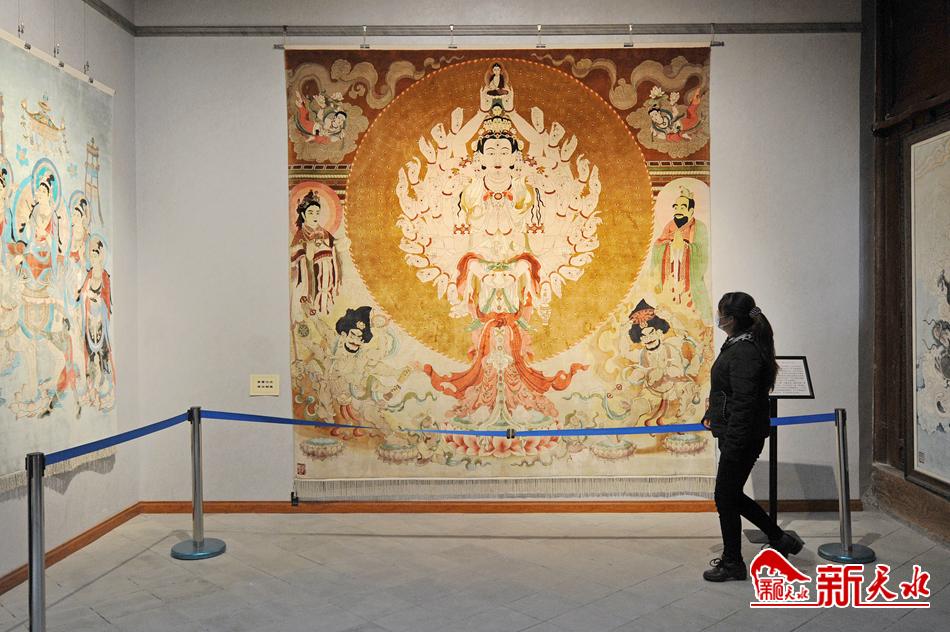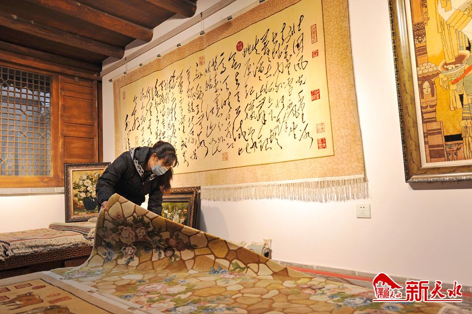 经过图案设计、染色、雕刻、剪花等20多道工序,一张张尺幅不同的精美丝毯作品呈现于展厅。2014年列入国家级非物质文化遗产代表性项目的天水丝毯织造技艺,不仅传承了传统编织技艺,而且在传统工艺的基础上有所创新,部分浮雕艺术挂毯采用了对图案主要纹样栽绒留长,织出层次再经剪花工艺雕刻,使挂毯图案呈现出浮雕的艺术效果。