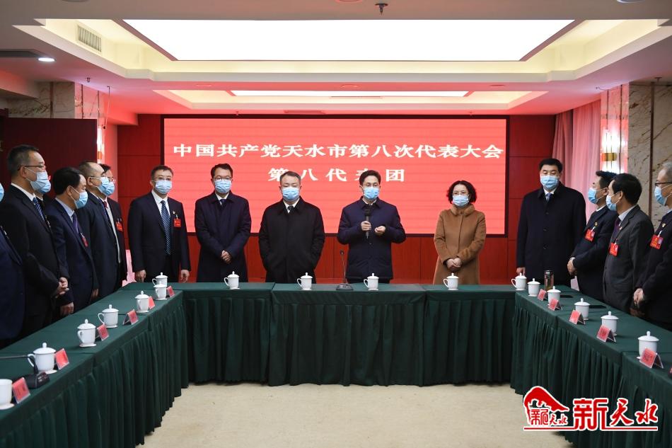 每到一处,王国先对代表们致以亲切问候,并向大家长期以来对天水经济社会发展作出的贡献表示感谢。王国先说,即将召开的市第八次党代会是在全市上下深入学习贯彻党的十九届六中全会精神、开启全面建设社会主义现代化新征程、奋进第二个百年奋斗目标的关键时期召开的一次十分重要的会议,是全市人民政治生活中的一件大事。各位代表肩负着全市广大党员干部和全市各族各界群众的期望,希望大家不负使命重托,认真履职尽责,以良好的精神面貌和饱满的政治热情,聚精会神、群策群力,共同开好大会,确保圆满完成大会各项目标任务。