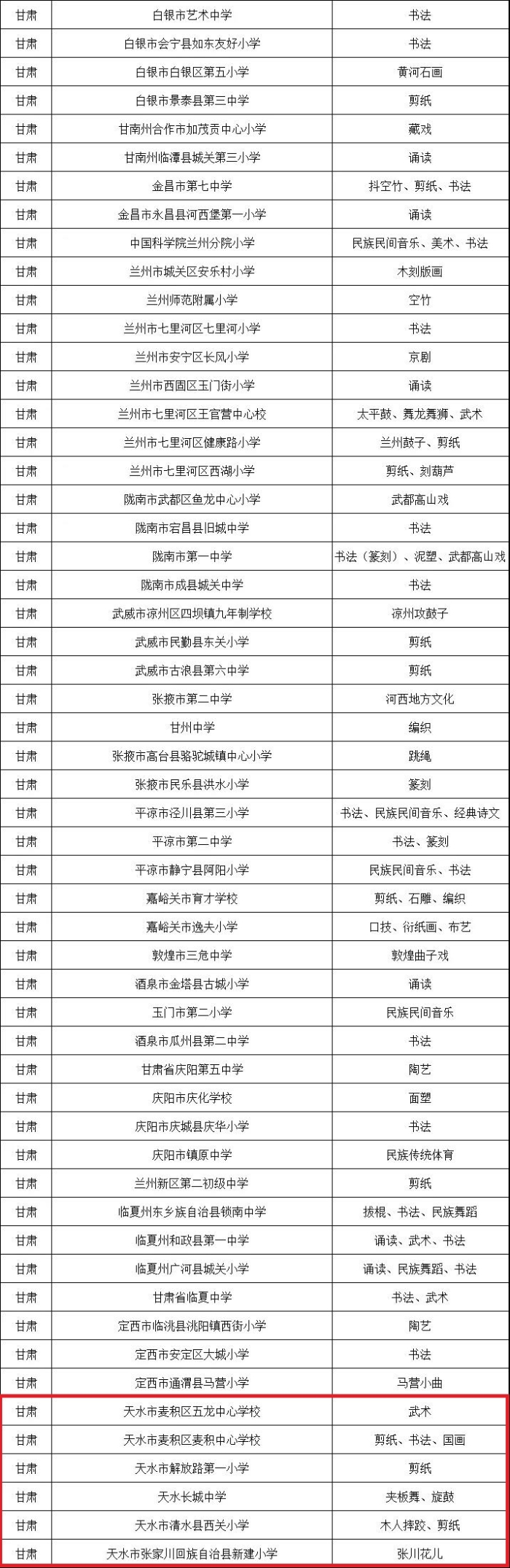 天水6所学校入选国家级名单