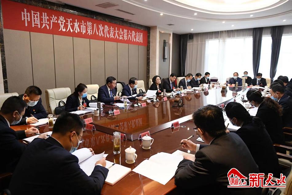王燕说,张永霞同志代表七届市委所作的报告,站位高、立意新、思路清、举措实,是一个高举旗帜、开拓创新、求真务实、凝心聚力、催人奋进的好报告。主要有以下几个方面特点:一是报告主题鲜明,政治站位“高”。报告旗帜鲜明讲政治,通篇贯穿习近平新时代中国特色社会主义思想和党的十九届六中全会精神,时刻对标对表习近平总书记对甘肃重要讲话和指示精神,强化推动高质量发展的使命担当,彰显了高度的政治责任与行动自觉;二是回顾工作全面,总结成绩“实”。报告全面总结了过去五年全市经济社会发展取得的成绩,提炼经验精辟深刻,指出问题客观实在;三是发展定位准确,目标要求“新”。报告全面分析了今后五年我市面临的新形势、新机遇和潜在的优势,围绕省委、省政府实施“一核两中心”都市圈战略实施,提出了天水经济社会发展的新定位、新目标、新要求,令人振奋;四是重点任务突出,路径措施“明”。报告围绕推动经济社会高质量发展提出了八项重点任务,既是重点、又是亮点,既是任务、又是举措,符合市情实际,是我市开启全面建设社会主义现代化新征程的“施工图”;五是保证坚强有力,作风要求“严”。报告对纵深推进全面从严治党进行了安排部署,敢于动真碰硬抓作风,为全市经济社会高质量发展提供了坚强保证。