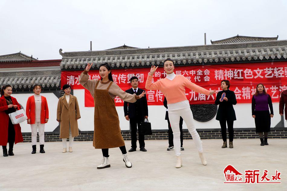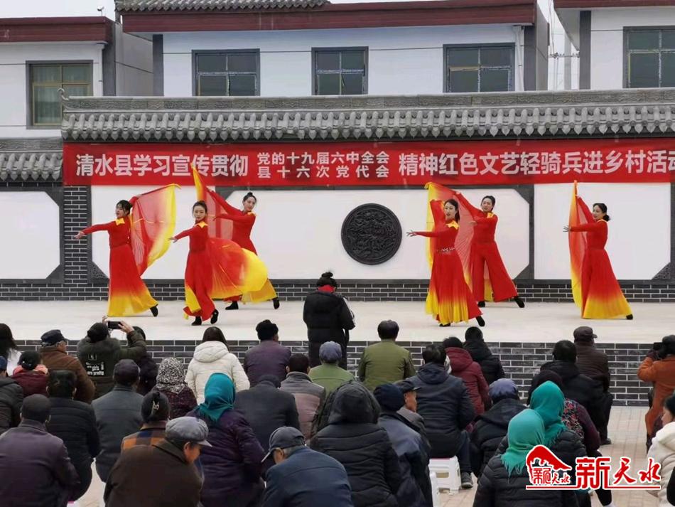 新天水讯【特约通讯员王玉芳 韦亚倩】12月14日,为深入学习宣传贯彻党的十九届六中全会和清水县第十六次党代会精神,进一步丰富广大群众精神文化生活,清水县组织开展了红色文艺轻骑兵进乡村惠民演出活动。