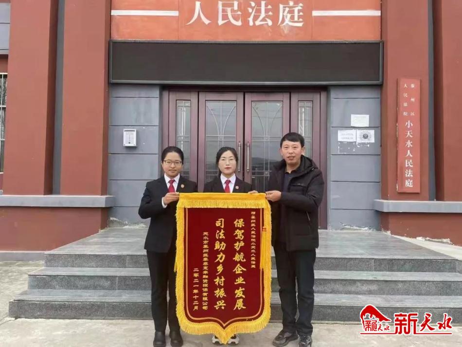 新天水讯【记者何慧娟】因快速高效调解了一起借款合同纠纷案,近日,秦州区人民法院小天水法庭收到了一面写有“保驾护航企业发展 司法助力乡村振兴”字样的锦旗。