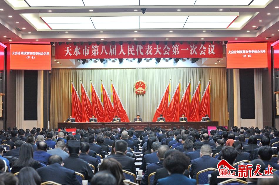 会议应到代表362名,实到代表337名,符合法定人数。 会议选举了天水市第八届人民代表大会第一次会议主席团和秘书长,通过了天水市第八届人民代表大会第一次会议议程,选举产生了天水市第八届人民代表大会第一次会议议案审查委员会、计划预算审查委员会。