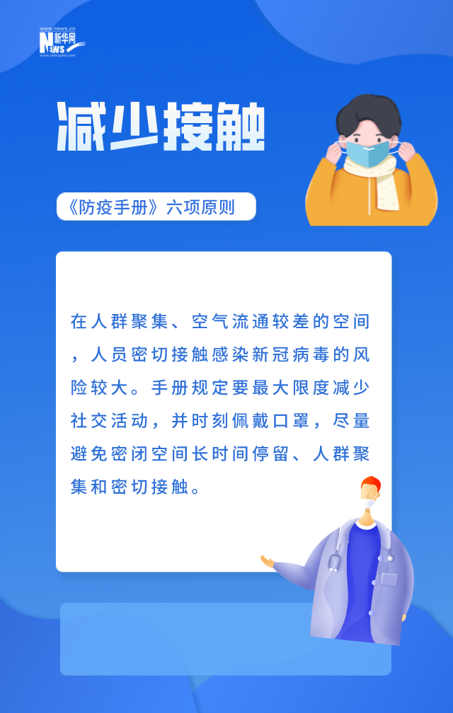 韩子荣表示,《防疫手册》提出6项原则,分别为疫苗接种;闭环管理;建立新冠联络官机制;检测、追踪与隔离;减少接触;提高卫生意识。具体如下: