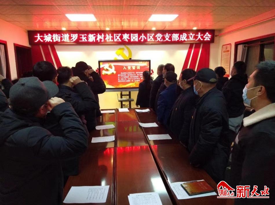 新天水讯【记者 张彬霞】12月21日,秦州区大城街道罗玉新村社区召开枣园小区党支部成立大会,推选了5名支部委员,进行了委员分工;参会党员重温入党誓词。