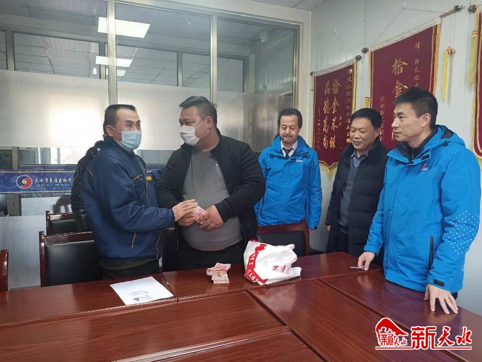 新天水讯【记者蔚军平】“真是太感谢李师傅了,这么多的钱如果找不回来,真不知道该怎么办!”12月22日,在天水羲通出租车有限责任公司,找回2.7万元现金的李先生握着出租车司机李建军的手连声道谢。