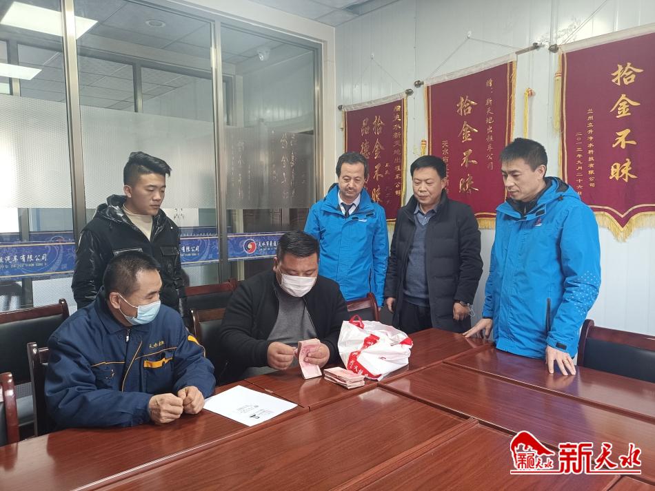 12月22日早上11时许,天水羲通出租车有限责任公司李建军驾驶甘ED15165号出租车行驶在秦州区羲皇大道石马坪附近待客时,李先生从小区出来后乘坐上了李建军的车,李先生到达目的地公园小学后,急忙下了车去接自己的孩子,随后又有一名乘车上了出租车,发现后排座位上有一个塑料袋,便将塑料袋交给了李建军,李建军接过塑料袋打开一看,里面放着几沓百元现金以及充电器等财物,李建军急忙给塑料袋里的财物拍了照片,发到了公司的工作群,并及时向公司领导汇报了此事。在原地等待失主前来认领失物未果后,李建军随后将失物上交给了公司。
