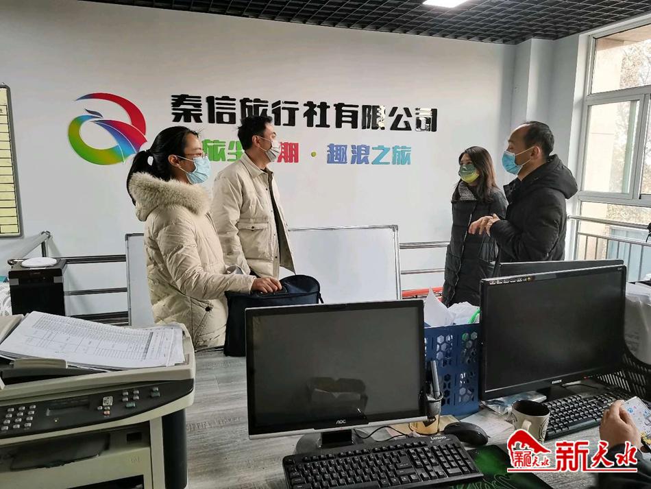 新天水讯 12月22日,麦积区文旅局对辖区旅行社、娱乐场所、网吧、演艺团体等开展复工复产前现场评估检查,认真贯彻“外防输入、内防扩散”的防控总要求,确保全区文化旅游市场平稳有序复工复产。