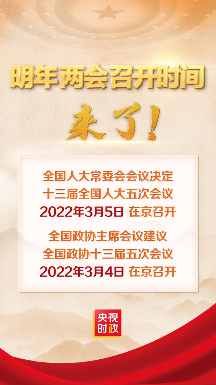 明年全国两会召开时间定了!
