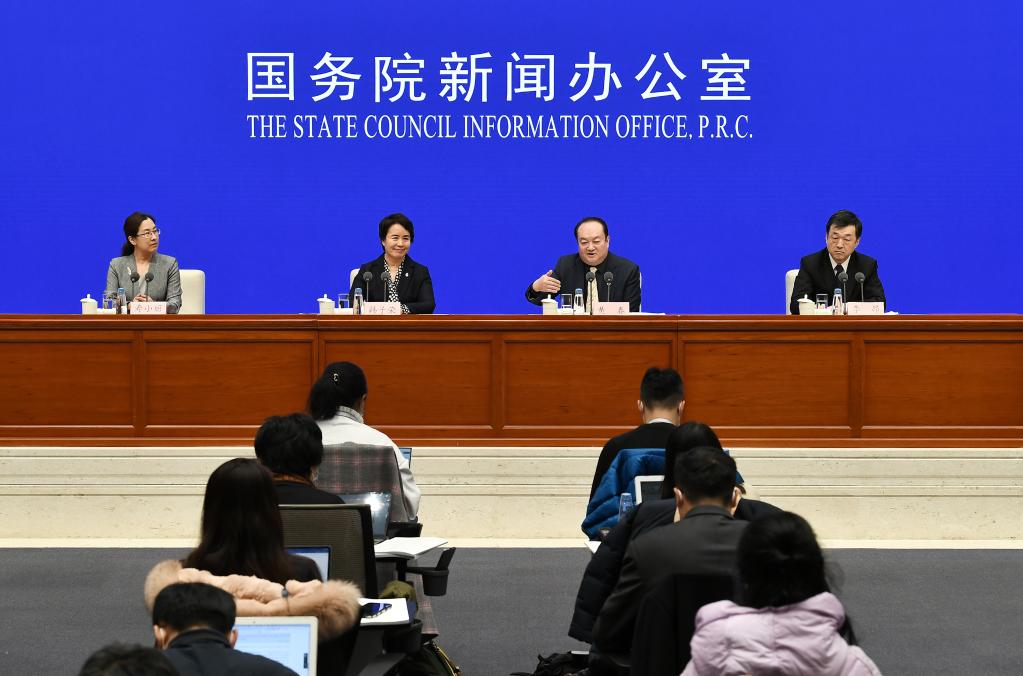 12月23日,北京冬奥组委专职副主席、秘书长韩子荣(左二),北京冬奥组委疫情防控办公室副主任黄春(右二),北京市卫生健康委员会副主任李昂(右一)出席新闻发布会。新华社记者李贺摄