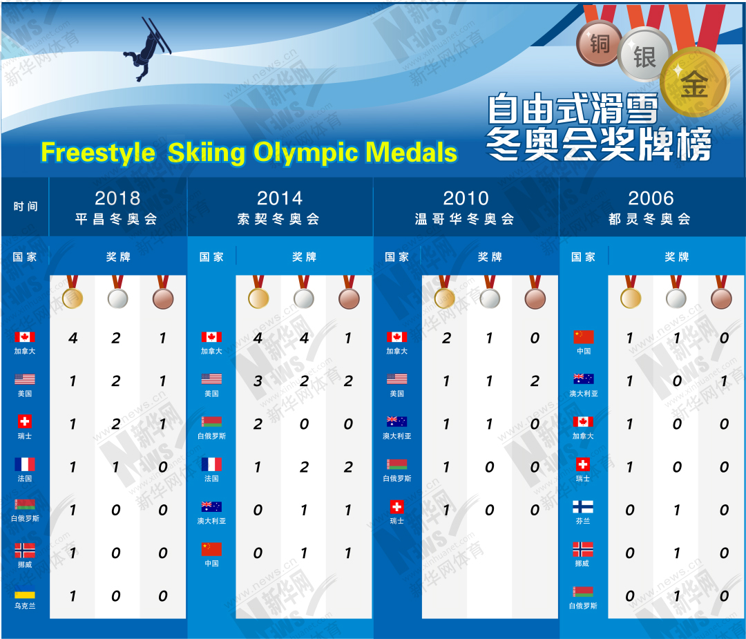 纵观历届冬奥会自由式滑雪奖牌榜,加拿大、美国包揽了近3届冬奥会的冠亚军,实力让人叹服。在2006年都灵冬奥会上,我国选手韩晓鹏曾用1枚宝贵的金牌为我国冬奥事业交出了一份满意的答卷,展现出不俗的实力!