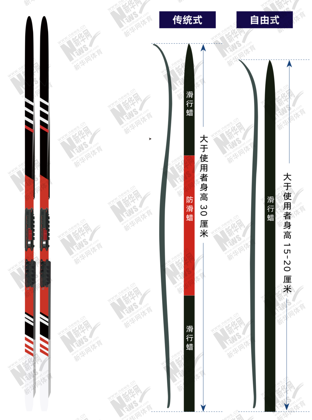 越野滑雪板主要有自由式板和传统式板两种类型。