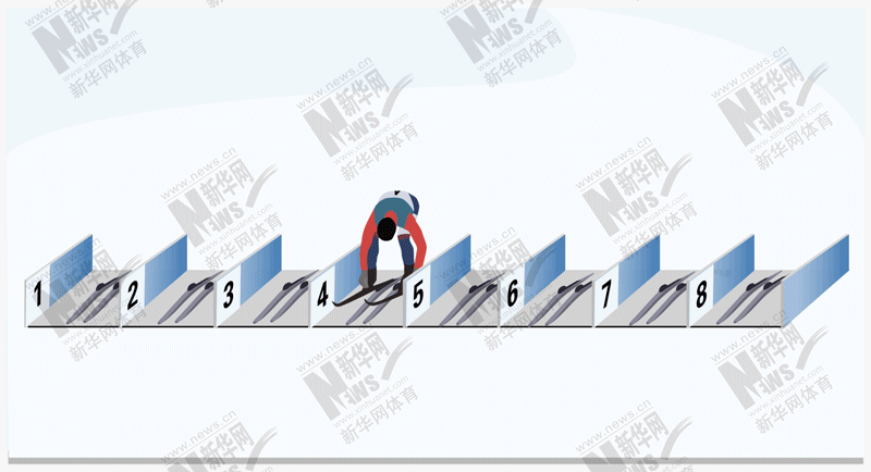 通常以带角度的出发线(箭形)排列,排名第1的运动员站在中间位置。偶数号码的运动员站在箭头右边,奇数号码的运动员站在箭头左边。