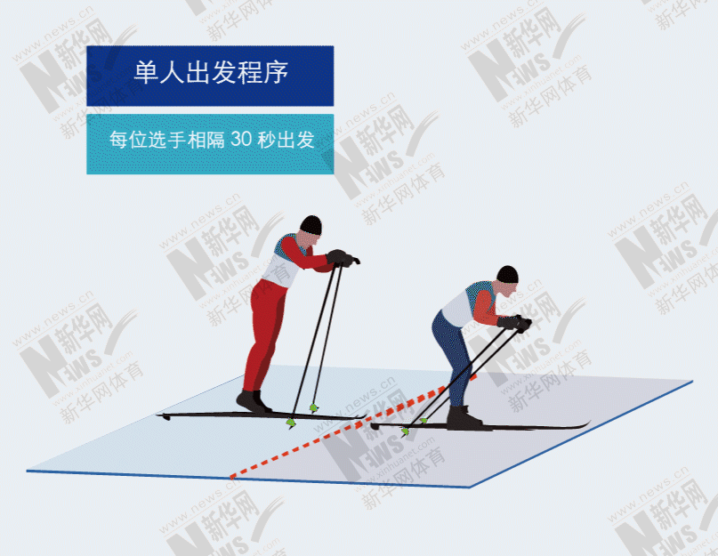 越野滑雪比赛的出发形式有单人出发、集体出发和追逐出发3种形式。