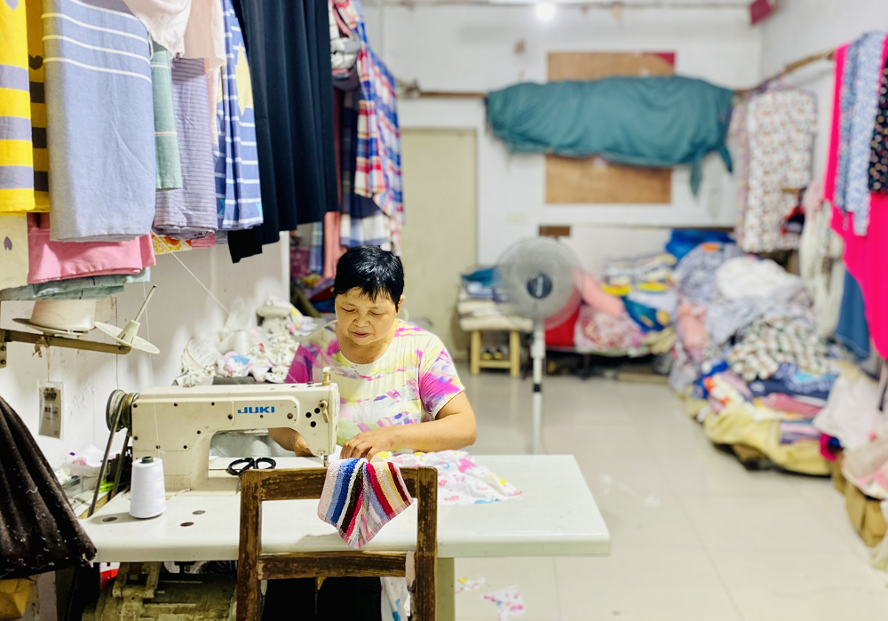 “老镇的变化,可以用翻天覆地来形容。”在蚕里街区对面的小街上,土生土长的沈斌英开了家服装加工店。