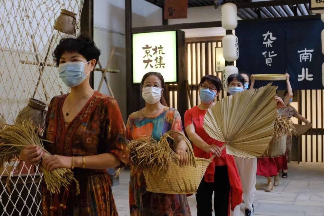 在“京杭大集”的粮仓内,钱惠琴喊上自己的广场舞姐妹们正饶有兴致地排好队形,摆弄着仓里的农具拍摄抖音短视频。