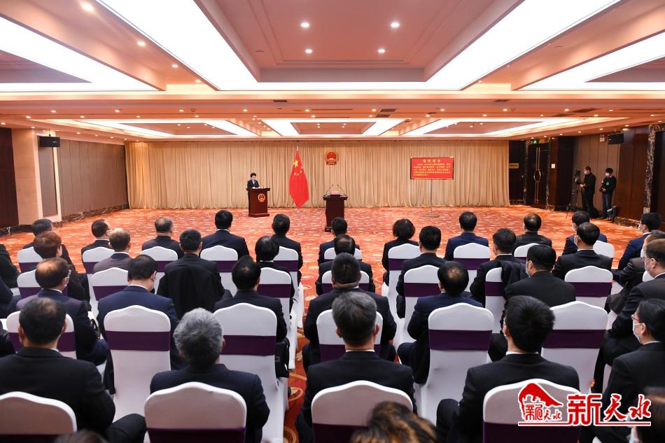 张永霞强调,这次大会选举大家担任国家机关领导职务,既是组织的期望、人民的重托,也是沉甸甸的责任。要严格恪守对党忠诚这个政治大节,忠诚践行习近平新时代中国特色社会主义思想,坚决捍卫“两个确立”,时刻胸怀“两个大局”,牢牢把握“国之大者”,对党忠诚、听党指挥、为党尽责,不断提高政治判断力、政治领悟力、政治执行力,更加自觉地增强“四个意识”、坚定“四个自信”、做到“两个维护”,在政治立场、政治方向、政治原则、政治道路上同以习近平同志为核心的党中央保持高度一致,以高度的政治自觉、思想自觉和行动自觉践行铮铮誓言。要认真学习贯彻习近平法治思想,坚决落实党中央关于全面依法治国的战略部署,恪守宪法原则,弘扬宪法精神,尊崇宪法、学习宪法、遵守宪法、维护宪法、运用宪法,带头依宪履职、依法行政、依法监察、公正司法,不断提高运用法治思维和法治方式深化改革、推动发展、化解矛盾、维护稳定、应对风险的能力,自觉在宪法法律范围内履职行权、推动工作。