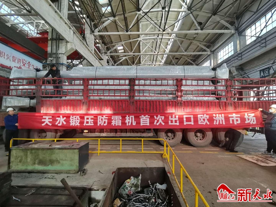 新天水讯 经过57天的紧张生产及试车,12月24日,天水锻压出口法国的第一批果园防霜机,顺利装车,发往青岛港装船,这是中国防霜机首次出口国际市场。