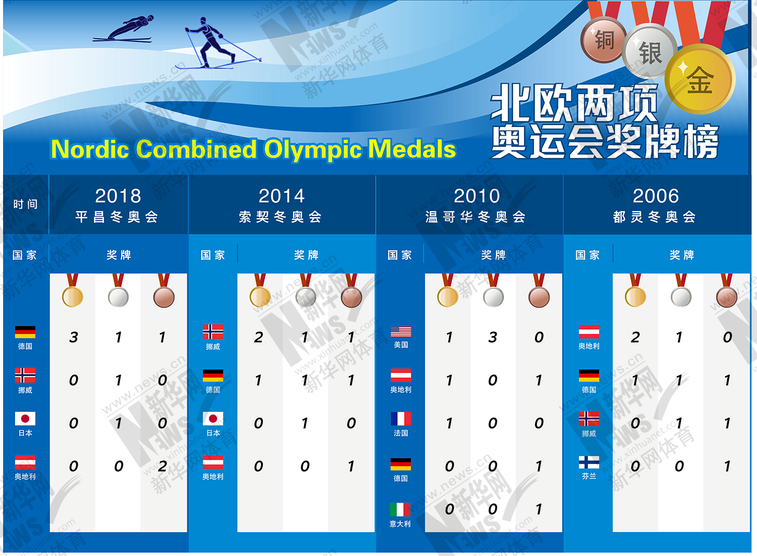 纵观近4届冬奥会北欧两项奖牌榜,奥地利、挪威、德国等欧洲国家是传统的老牌强国,实力雄厚。亚洲国家日本独树一帜,近两届连续杀入前三甲,取得不俗的成绩。希望我国北欧两项运动健儿能在北京冬奥会上创造奇迹!