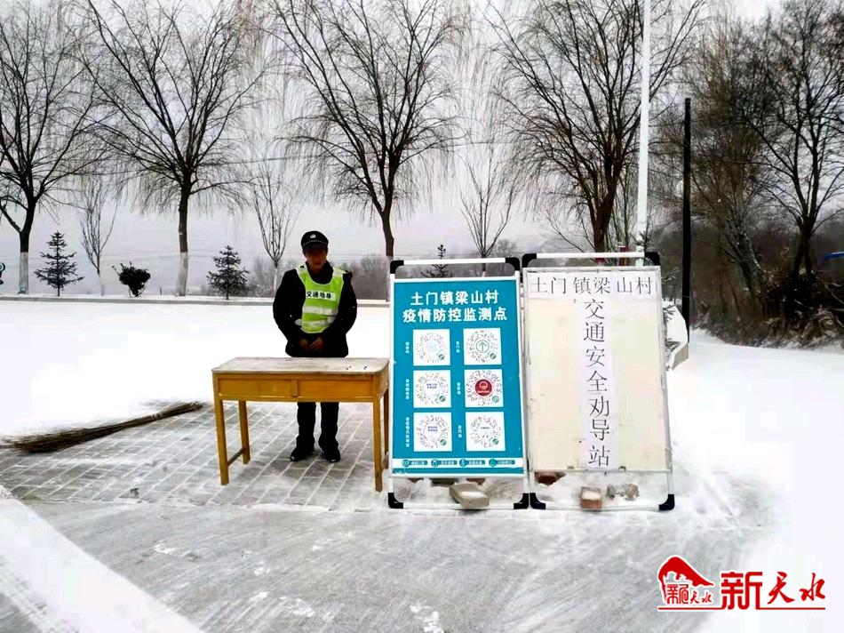 新天水讯【特约通讯员 王玉芳】 随着周边省份本土确诊病例不断增加,疫情输入风险不断增大,25日清水县又迎来降温、降雪天气,清水县公安局交警大队全体民辅警坚守路面一线,全力做好道路交通安全应急管理,守好疫情防控“外防输入”重要卡口,做到疫情防控和保安全保畅通两不误,全力确保辖区人民群众身体健康和生命安全。