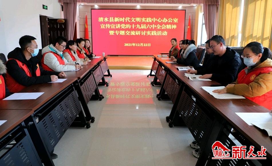 新天水讯【特约通讯员 王玉芳】连日来,清水县将学习贯彻党的十九届六中全会精神与学习贯彻清水县第十六次党代会精神结合起来,与学习贯彻清水县“两会”精神结合起来,通过新时代文明实践宣讲和专题交流研讨的方式,让全会精神深入民心。