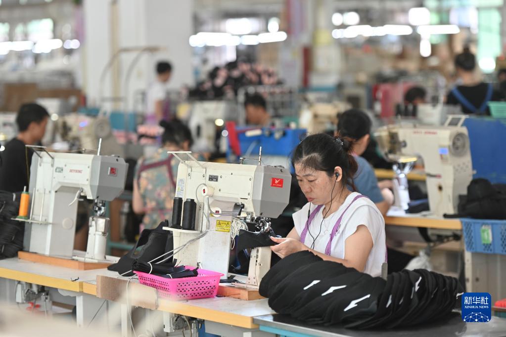 在位于福建省泉州市的鸿星尔克集团鸿荣轻工公司车间,工人在制鞋生产线上操作缝纫机(7月30日摄)。当地税务部门近年来积极落实减税降费,出台一系列稳定工业、扶持外贸、鼓励企业研发创新的政策,服务实体经济发展。新华社记者 宋为伟 摄